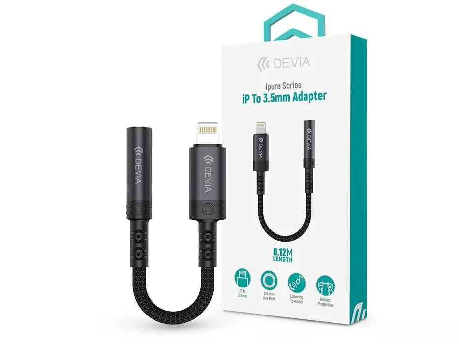 KÁBEL - Lightning dugó -> 3,5mm jack aljzat adapter, Devia Ipure series, fekete