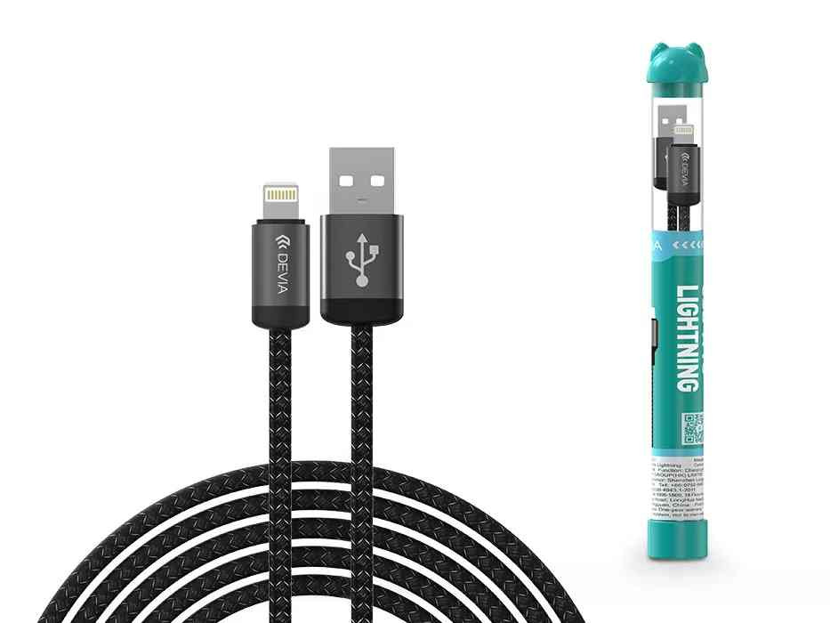 KÁBEL - USB 2.0 A-Lightning kábel, 1.0m, Devia Tube Gracious, szövet, fekete