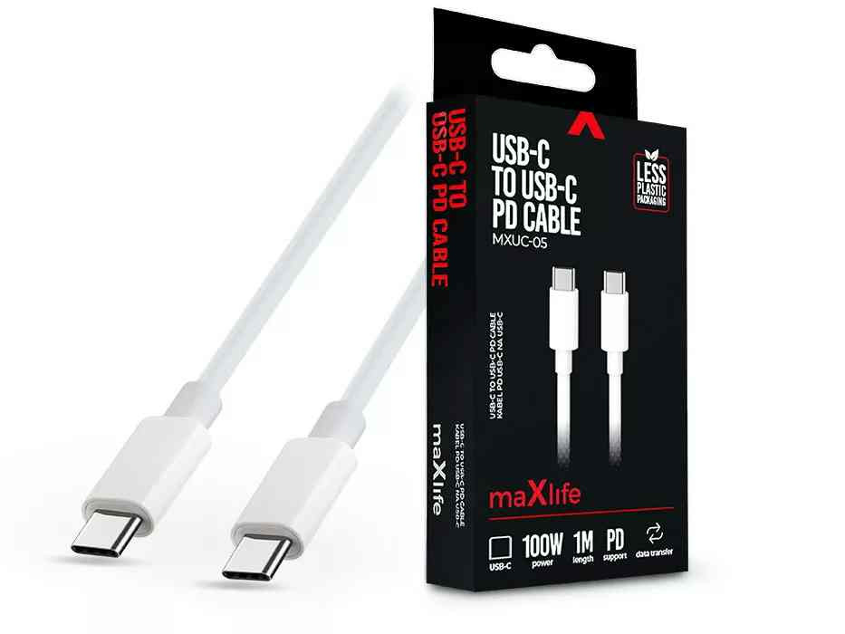 - Maxlife márkájú kábel USB-C- USB-C csatlakozóval.