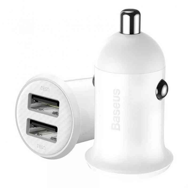 USB - USB töltő, autós, 2xUSB-A, 4.8A, Baseus Grain Pro, fehér