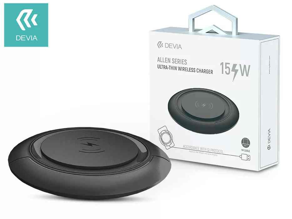 USB - Vezeték nélküli töltő, Devia Allen Series, Qi, 15W, fekete