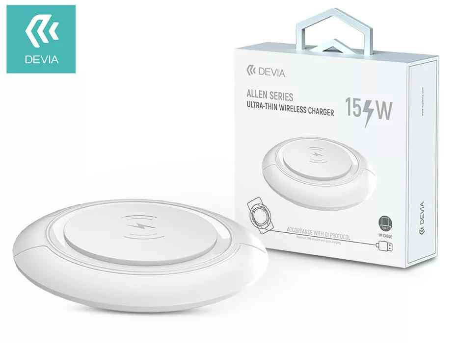 USB - Vezeték nélküli töltő, Devia Allen Series, Qi, 15W, fehér
