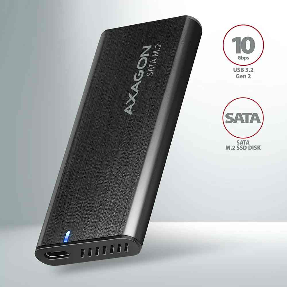 WH - M.2 külső ház, M.2 SATA SSD-hez, Axagon EEM2-SBC, USB-A (10Gbps)